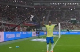 在一场足球热身赛中,巴西客场对阵韩国队,...